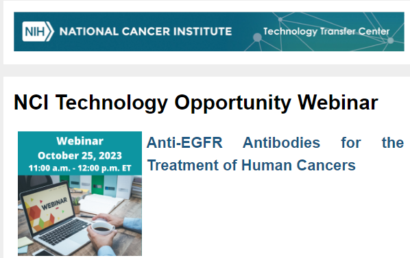 The NIH has a series of Technology Opportunity Webinars during which a recent technology is presented for collaboration and licensing.